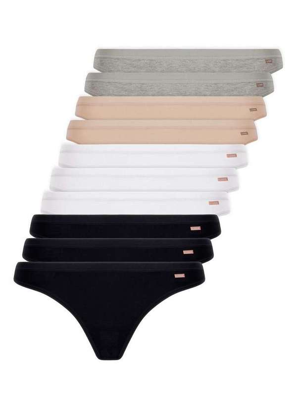 Lupo - Kit com 10 Calcinhas Tanga Loba 40354-001 Preto-Branco-Natural-Cinza