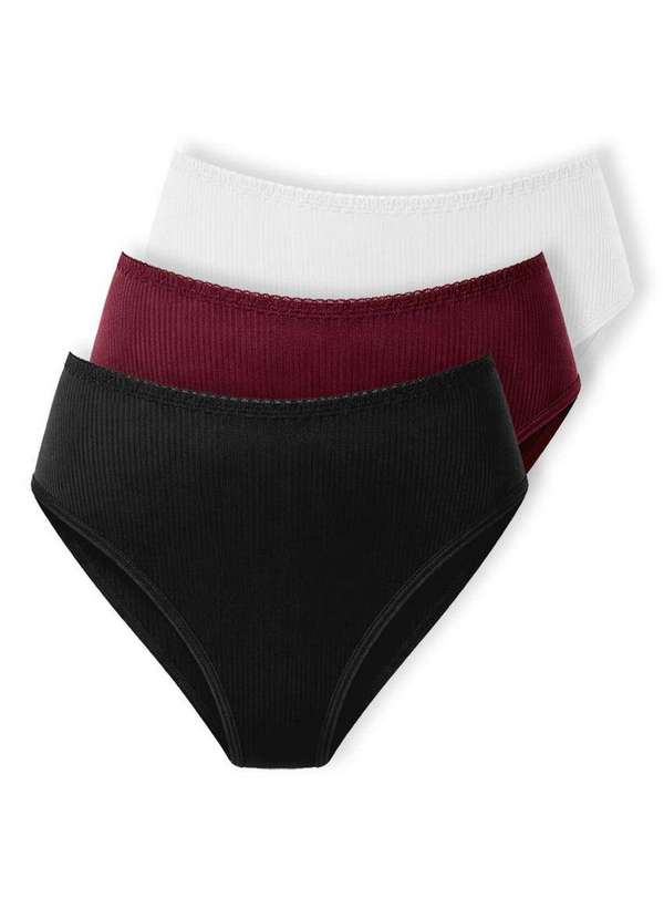 Demillus - Kit com 3 Calcinhas Alta Abrupt Demillus 56096 Preto-Vinho-Barolo-Branco