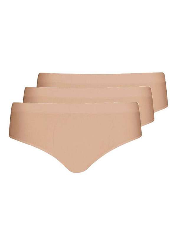 Características: Calcinha caleçon sem costura. Tecnologia antimicrobial e forro de algodão. Produzido com fios especiais. Excelente conforto e durabilidade. Cores: Preto: Todas preto Natural: Todas natural Nude: Todas nude Preto/Natural: 2 preto e 1 natural Preto/Nude: 2 preto e 1 nude Preto/Natural/Nude: 1 preto, 1 natural e 1 nude Composição: 93% poliamida, 05% elastano e 02% Algodão.