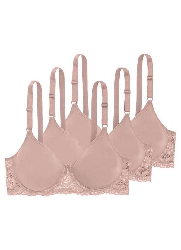 Triumph - Kit com 3 Sutiãs com Aro e sem Bojo Triumph Brigitte 24785 Taça B Mink