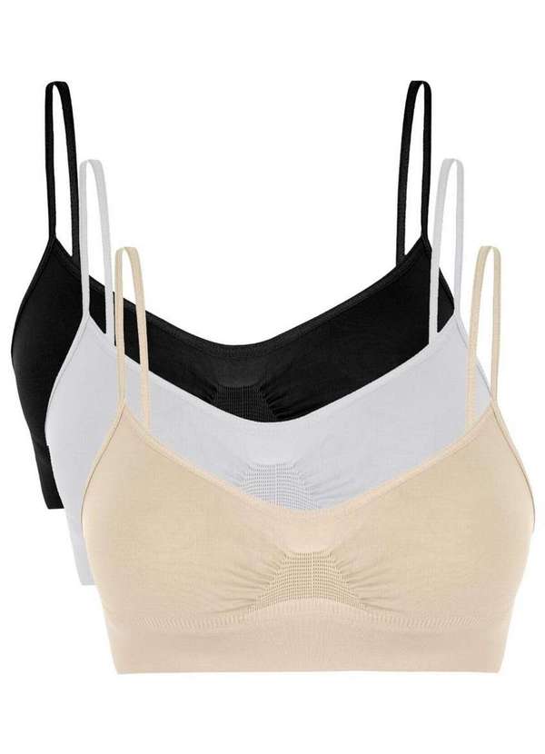 Características: Sutiã Clássico Sem Costura. Confeccionado com fios especiais que proporcionam excelente conforto e durabilidade. Possui proteção antimicrobial. Com base mais largas para melhor sustentação. Com desenhos especiais para acomodar melhor os seios. Cores: Branco: todos brancos. Natural: todos naturais . Vermelho: todos vermelho. Preto: todas pretos. Natural/Branco/Preto: 1 natural, 1 branco e 1 preto. Composição: 94% Poliamida e 06% Elastano.