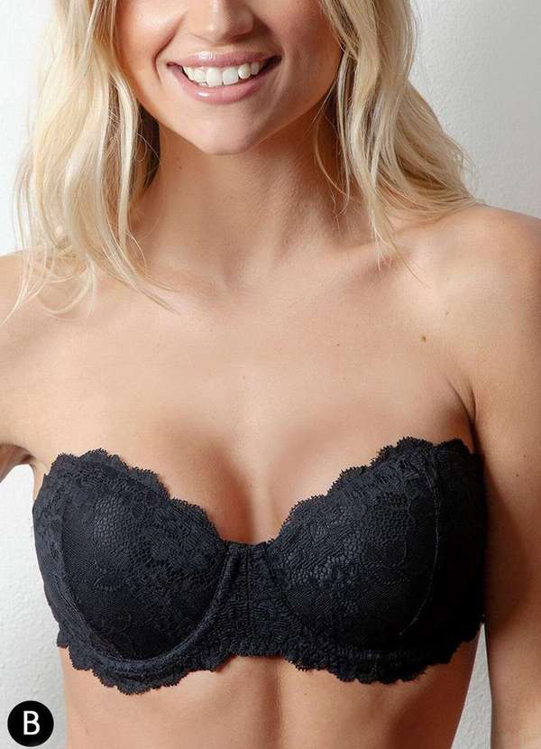 Características: Sutiã tomara que caia todo rendado. Com aro e bojo profundo e macio. Taças revestidas por renda e laterais forradas de tule para maior firmeza. Aplicação de silicone na parte de trás aumenta a aderência do sutiã ao corpo. Destaque para a modelagem do entresseio do sutiã que é anatômica e confere um visual de leveza para o sutiã. Alças opcionais ajustáveis. Logo metálico aplicado na parte de trás. Gancha larga com tripla regulagem confere ainda mais segurança. Composição: 75% Poliamida e 25% Elastano.
