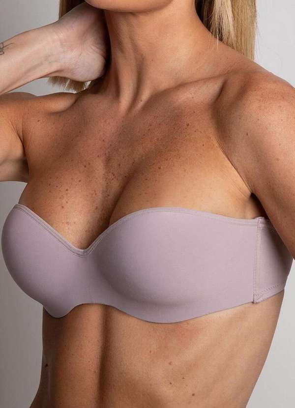 Características: Sutiã modelo tomara que caia Com aro e bojo Em microfibra Tecno com anatômico, que sustenta e modela suavemente Barbatanas laterais proporcionam estabilidade Elástico nas costas na parte superior com aplicação de silicone para maior aderência ao corpo Fecho duplo com tripla regulagem Outros Detalhes: Modelo não acompanha alças Composição: Tecido: 89% Poliamida, 11% Elastano Bojo: 100% Poliéster