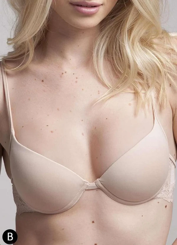 Características: Sutiã em tecido de supermicrofibra com bojo básico, que dá forma sem aumentar. Laterais em renda importada. Alças fininhas, que ficam delicadas quando aparecem na roupa. Fecho com tripla regulagem. O tecido de supermicrofibras é fino, sedoso e refrescante. Absorve facilmente a umidade da pele mantendo uma sensação de frescor por todo o dia. Outros Detalhes: Taça B. Modo de Lavagem: Lave a mão em água fria. Não use cloro. Não passe. Não use secadora. Composição: Corpo: 75% Poliamida e 25% Elastano. Renda: 87% Poliamida e 13% Elastano. Forro: 100% Poliéster.