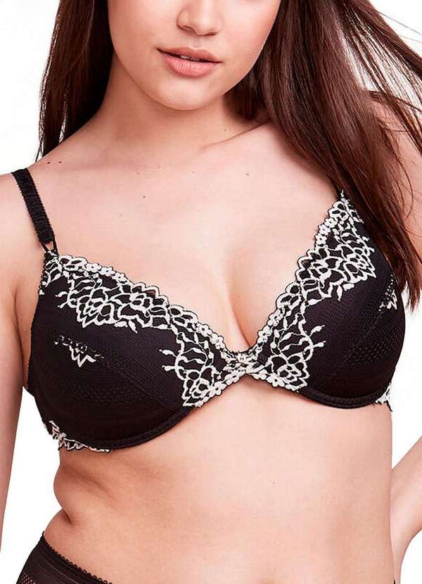 Características: Sutiã modelo meia taça Com bojo macio que promove o encaixe e o desenho perfeito do busto Com aros para maior sustentação Alças estilizadas e reguláveis Colchete com 3 regulagens Renda com design exclusivo Medalhinha personalizada Limited Edition Composição: 90% Poliamida e 10% Elastano Forro Bojo: 100% Poliester