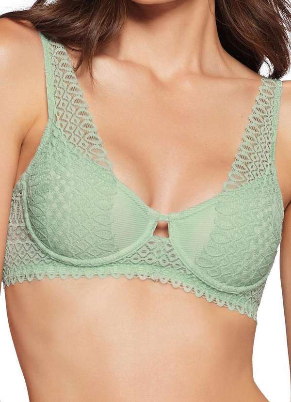 Características: Sutiã com aro e sem bojo Busto em laise forrada Detalhe de renda nas alças até a altura dos ombros Possui alças fixas e com regulagem Fecho em colchete nas costas Corpo em laise exclusiva Composição: Renda: 79% Poliamida e 21% Elastano Laise: 92% Poliamida e 08% Elastano Microfibra: 88% Poliamida e 12% Elastano