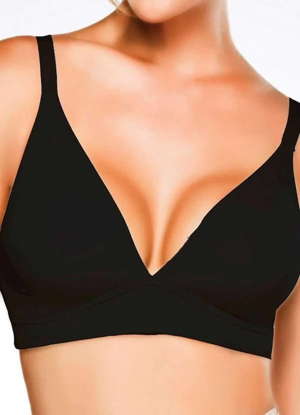 Características: Sutiã moldado sem aro e sem bojo Decote acentuado em V Busto em tecido duplo para melhor sustentação Alças fixas e ajustáveis de 17mm Fecho nas costas em colchete Base inovadora com espuma solf Atende tamanho plus size Composição: Tecido: 84% Poliamida e 16% Elastano Forro do Bojo: 100% Algodão Enchimento: 100% Poliuretano