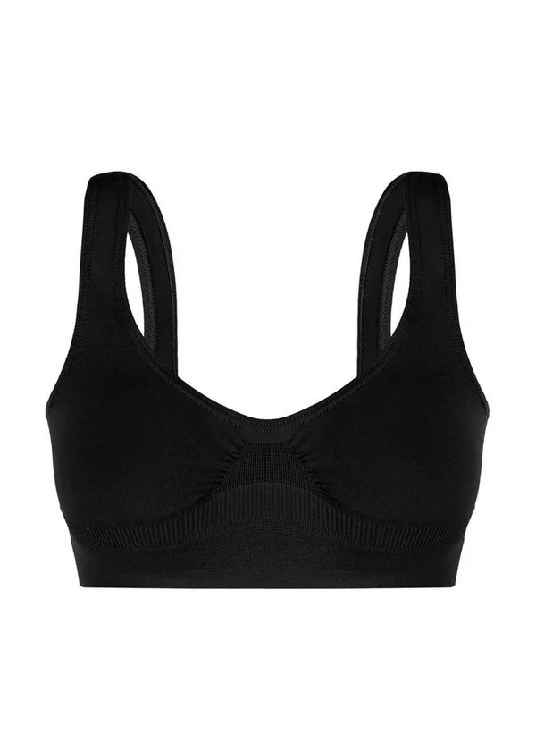 Características: Top Sem Costura Loba Lupo. Confeccionado em microfibra de toque macio e super confortável. Sem aro e com busto anatômico que acomoda os seios na medida ideal. Sub busto em tecido canelado duplo, para maior segurança. Alças largas e boa elasticidade. Utiliza a tecnologia Sanitized ® que garante total proteção antimicrobial. Costas sem fecho. Composição: 94% Poliamida e 06% Elastano.
