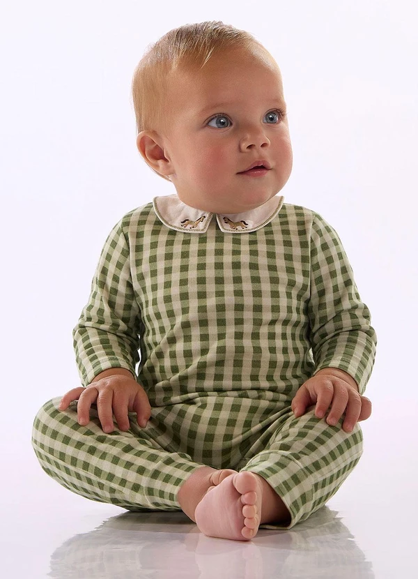 Up Baby - Macacão Bebê Suedine Xadrez Estampado