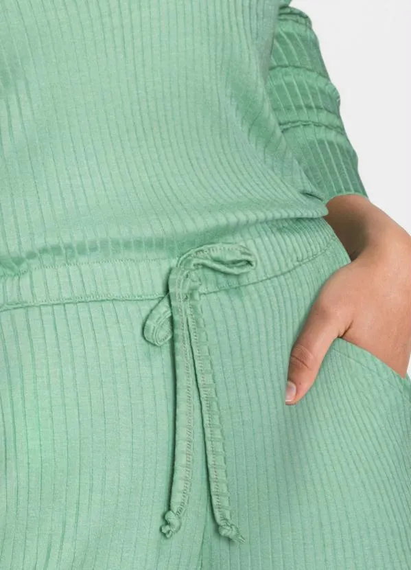 Complemento: Bolsos faca; detalhe para amarrar; elástico na cintura