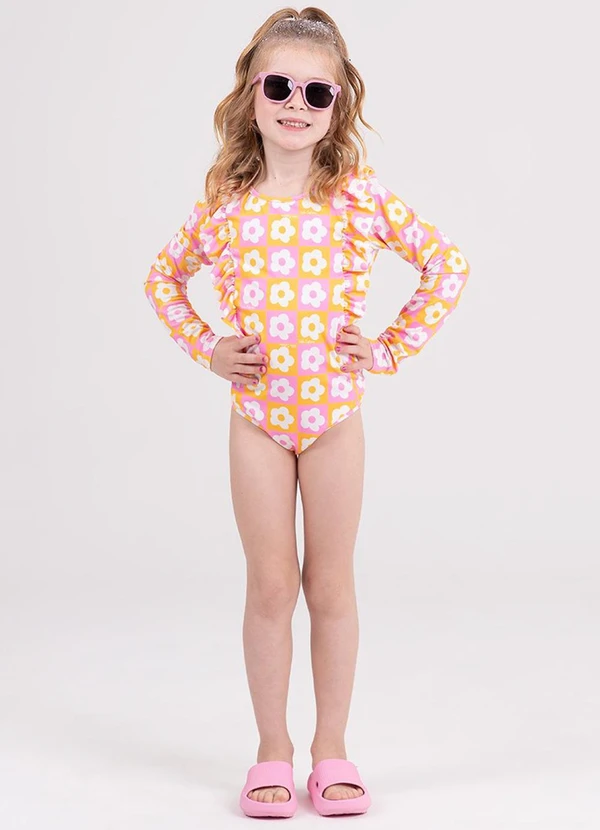 Vida Costeira - Maiô Manga Longa Uv 50+ Details Suplex Amarelo