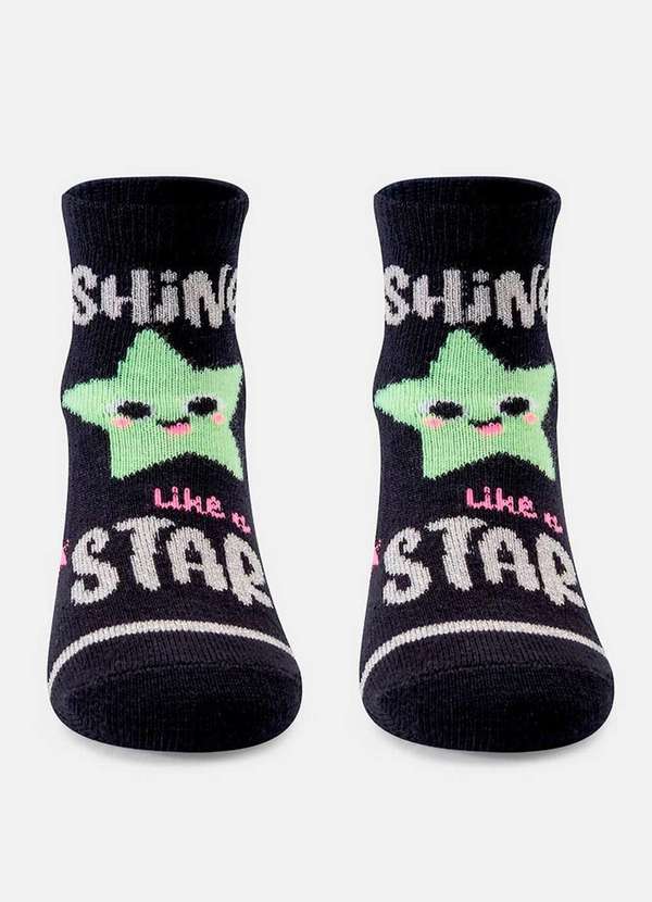 Características: Meia infantil Punho elástico confortável Estampa divertida brilha no escuro Cano: Curto Composição: 70% Algodão, 28% Poliamida e 02% Elastano