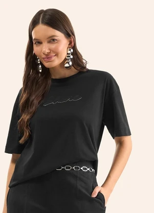 T-Shirt Manga Curta Estilosa Preto