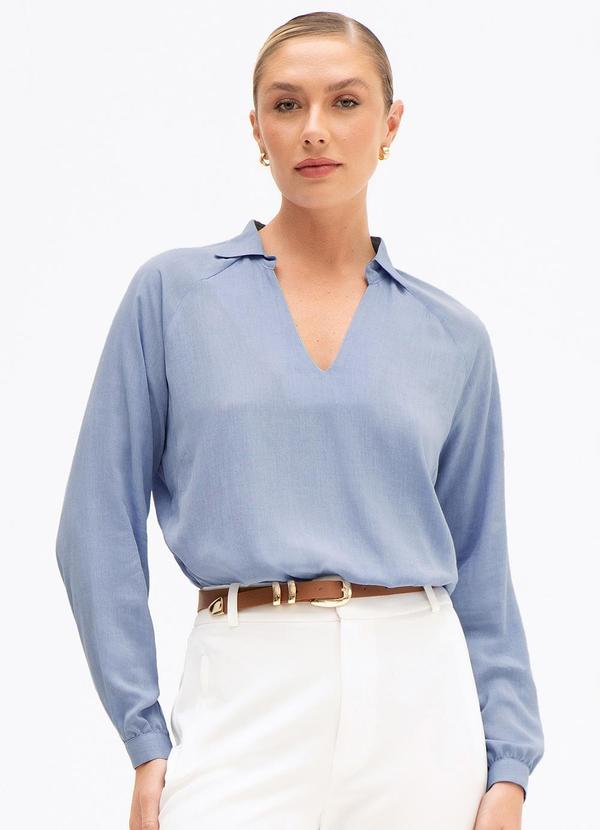 Principessa - Blusa Comfy Manga Raglan em Viscose Azul Fabi