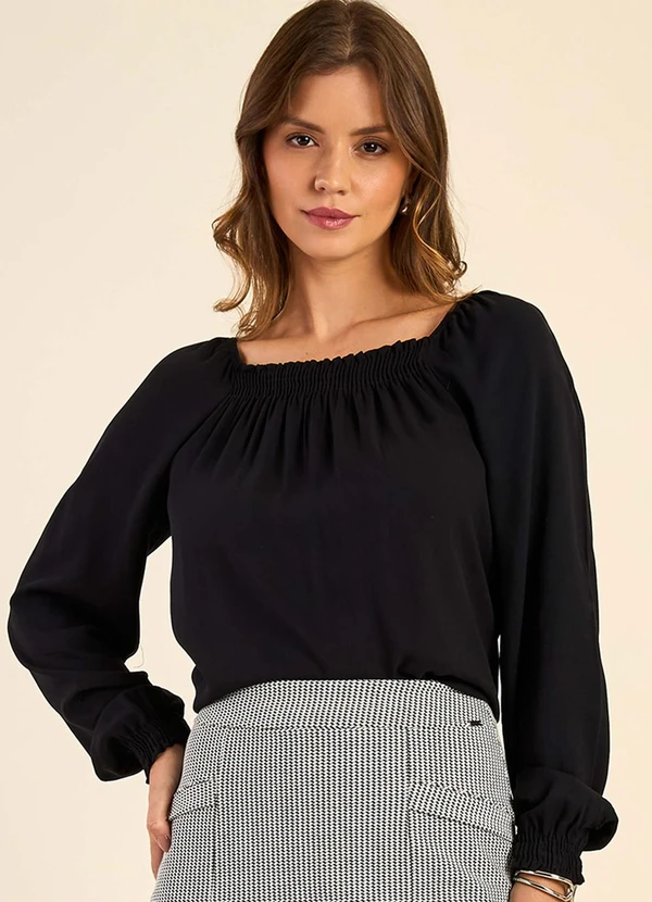 Marialícia - Blusa Feminina Ciganinha Manga Longa Preto