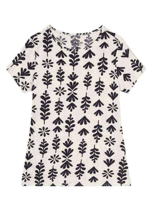 Malwee - Blusa Feminina Malwee 1000085891 Dk42b-Off-White-Folhas
