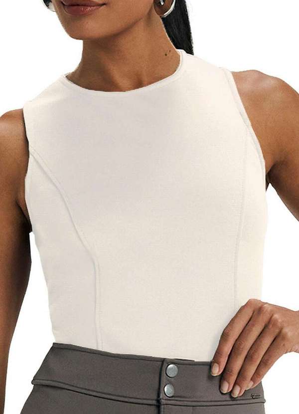 Características: Blusa feminina regata Peça versátil e moderna Ideal para compor looks casuais com um toque de sofisticação Ela é confeccionado em malha com estrutura, o que confere maior sustentação e um caimento mais encorpado ao corpo Modelagem reta e ajustado ao corpo com comprimento intermediário, o que favorece diferentes tipos de silhuetas Gola redonda e rente ao pescoço, oferecendo um visual clean e elegante Composição: 81% Poliéster, 16% Viscose e 03% Elastano