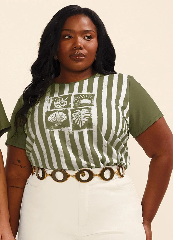 Marialícia - Blusa Feminina Regular Estampada Verde