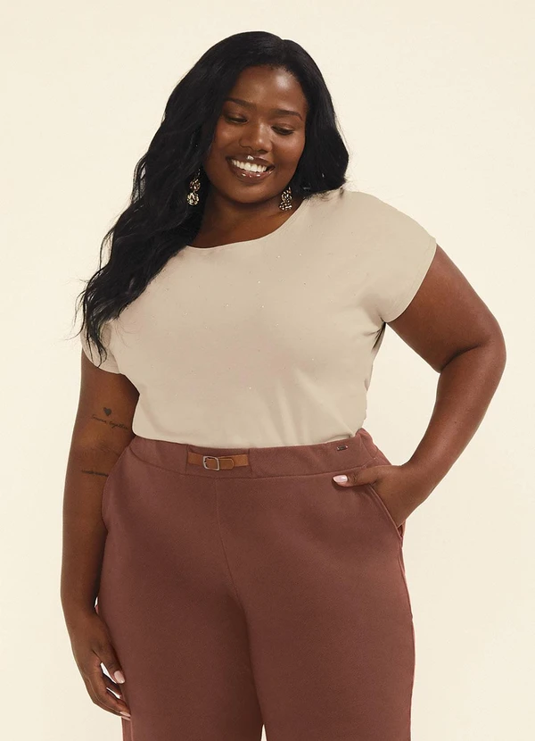 Marialícia - Blusa Feminina Suedine Strass Bege