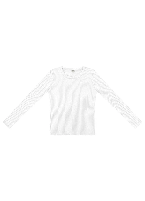 Rovitex - Blusa Manga Longa Canelada Básica Branco