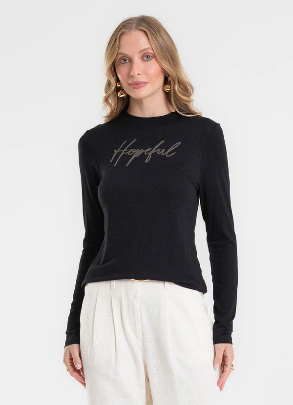 Rovitex - Blusa Manga Longa com Bordado Preto