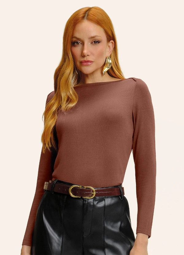 Endless - Blusa Manga Longa Decote Canoa Marrom