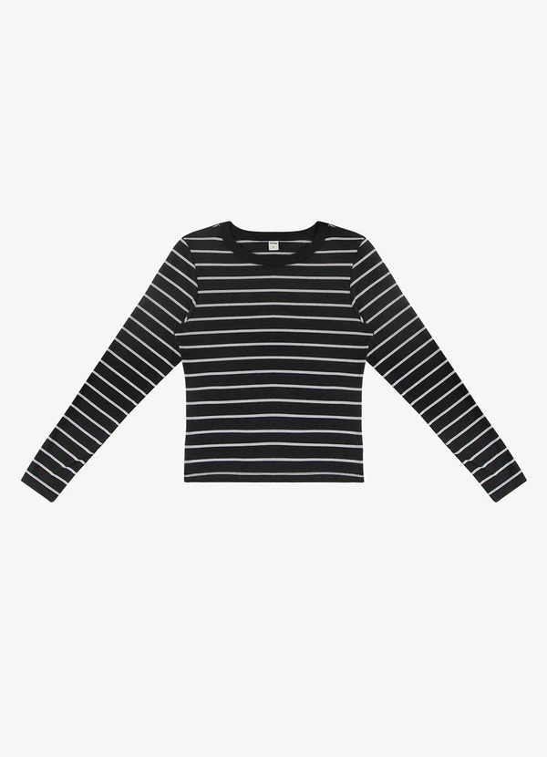 Rovitex - Blusa Manga Longa Listrada Básica Preto