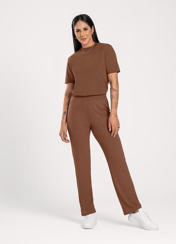 Cativa - Calça em Canelado Marrom Escuro
