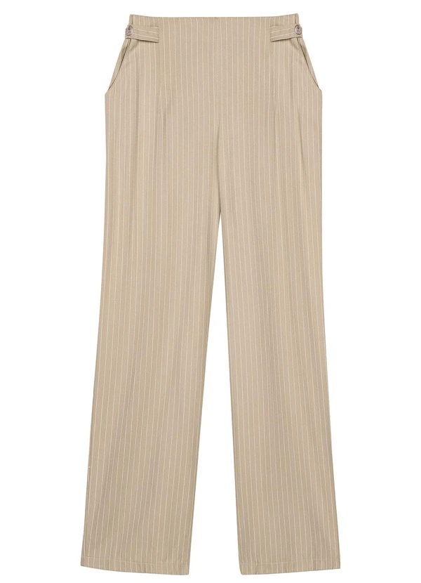 Marialícia - Calça Feminina Listrada Reta Bege