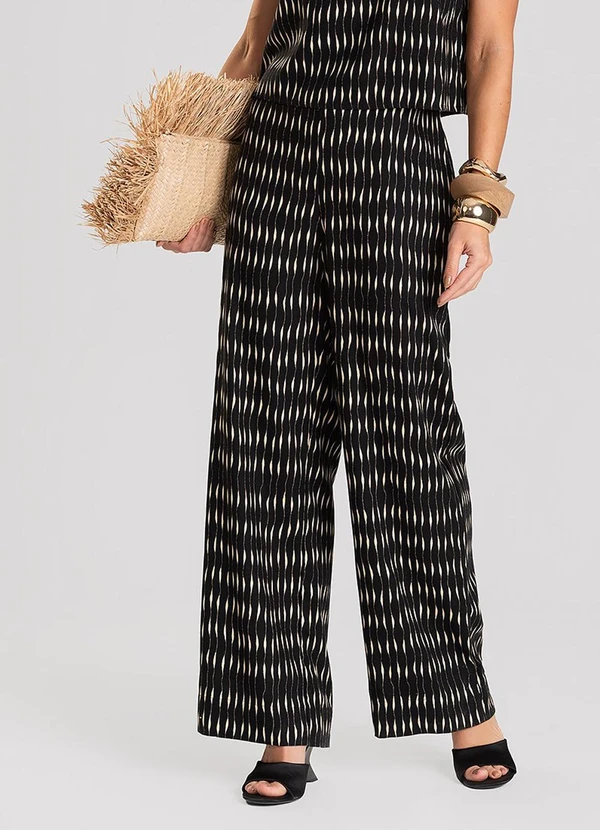 Dianna - Calça Feminina Pantalona em Linho Preto