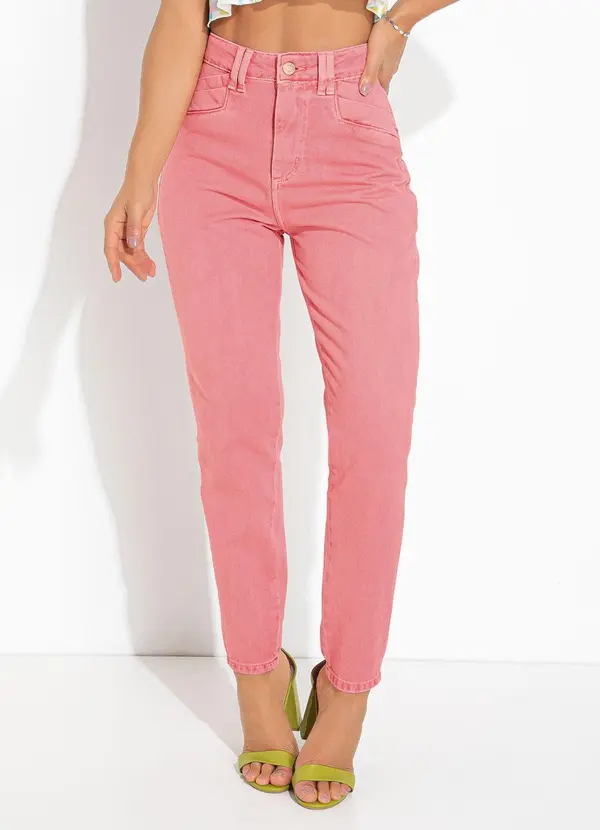 Sawary Jeans - Calça Mom Rosa em Sarja