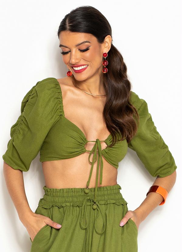 Farm - Cropped de Linho com Amarração Verde