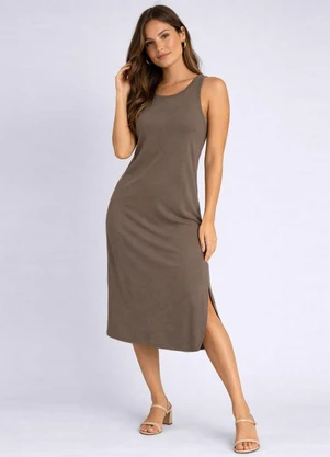 Vestido Feminino Regata Midi com Fenda Marrom