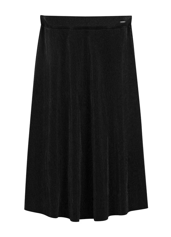 Marialícia - Saia Feminina Midi Plissada Preto