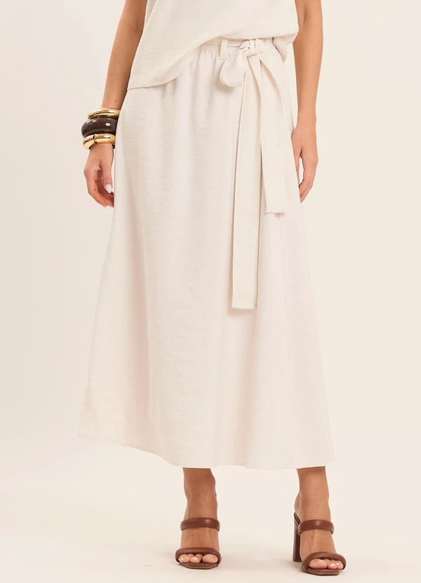 Doce Trama - Saia Midi Brisa em Linho Branco