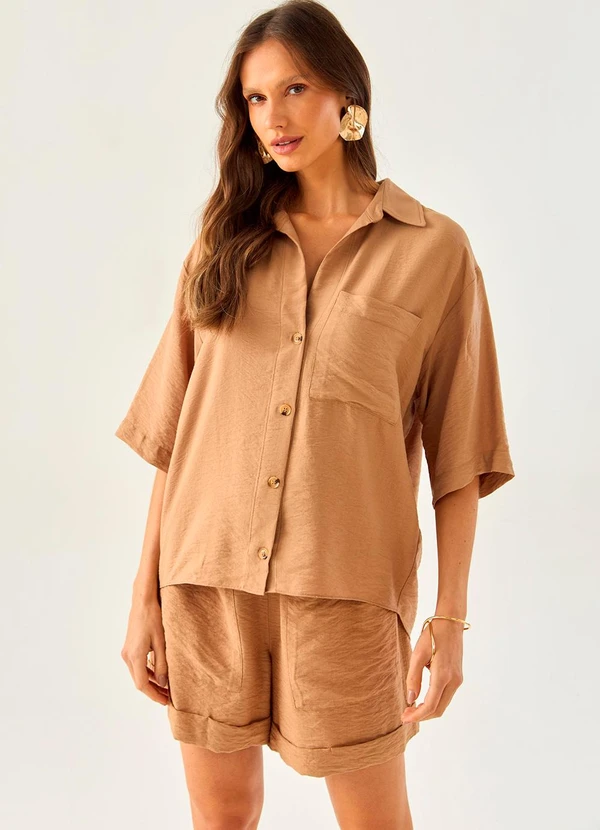 Carlota Costa - Short Solto com Bolsos Marrom