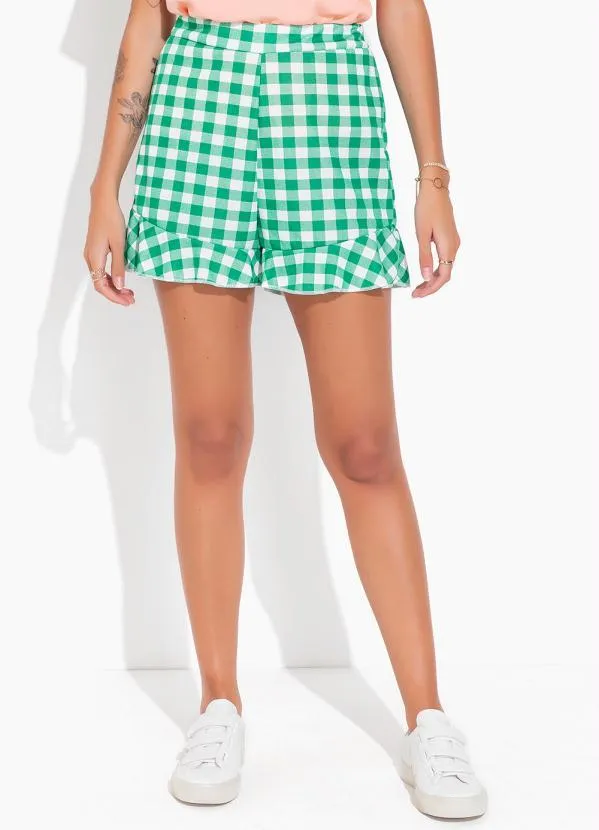 Moda Pop - Short Xadrez com Babado e Cintura Alta