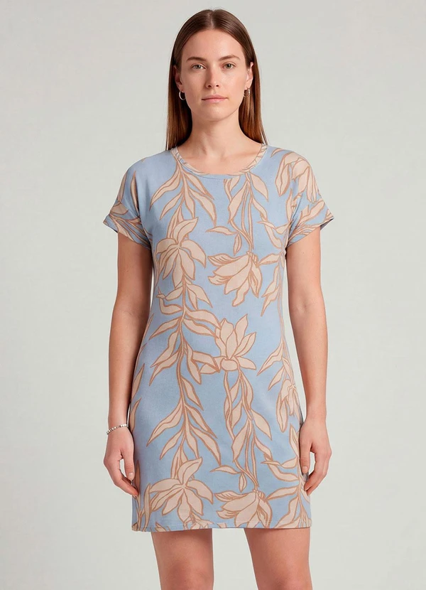Infinita Cor - Vestido Básico com Gola Redonda Azul