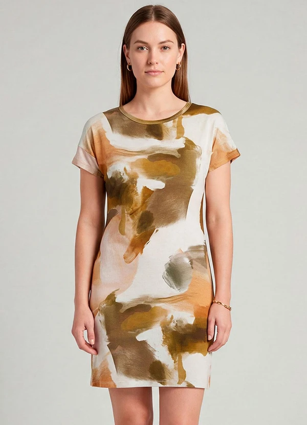 Infinita Cor - Vestido Básico com Gola Redonda Bege