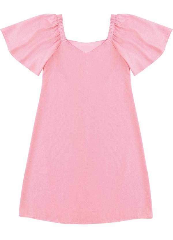 Malwee - Vestido Curto Evasê Lurex Rosa