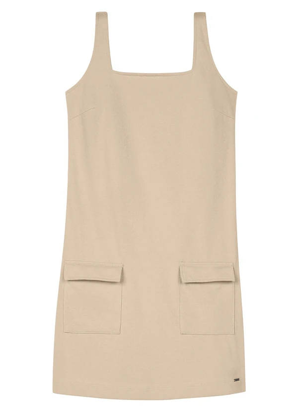 Marialícia - Vestido Feminino com Bolsos Lapela Bege