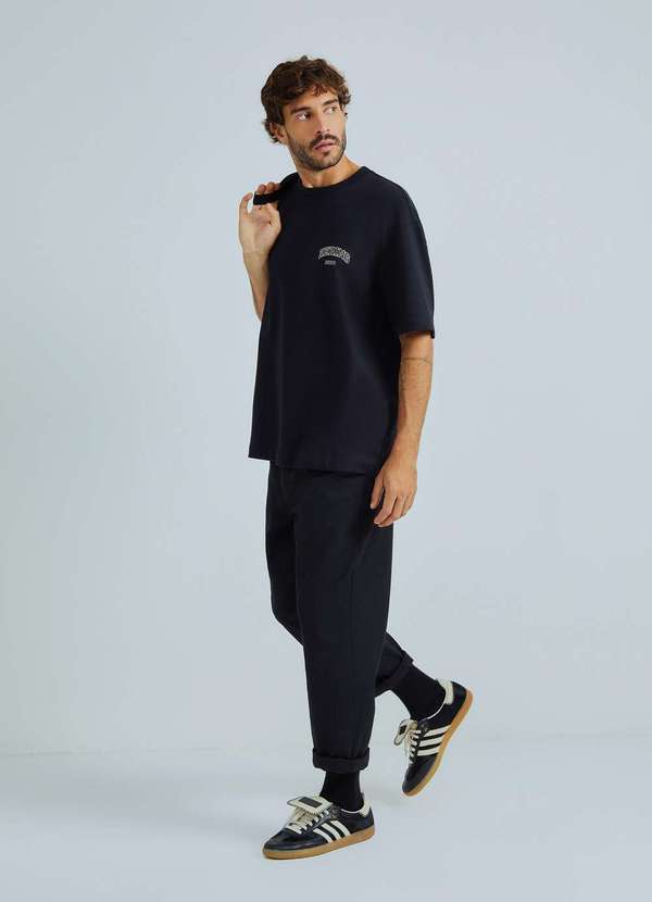Hering - Camiseta Masculina Relaxed Manga Curta com Bordado Preto