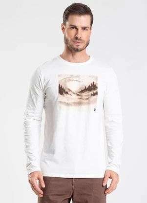 Camiseta Manga Longa com Estampa Bege