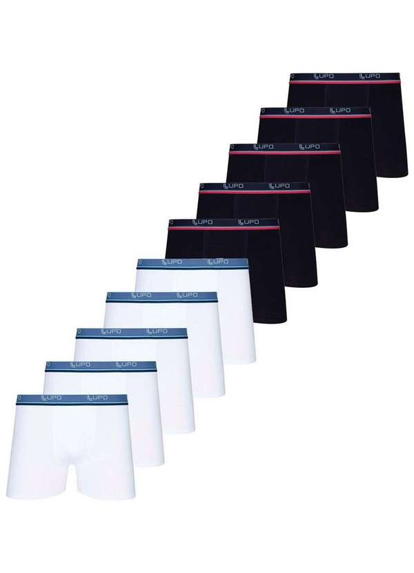 Lupo - Kit com 10 Cuecas Boxer Lupo 523-910 Branco-Preto