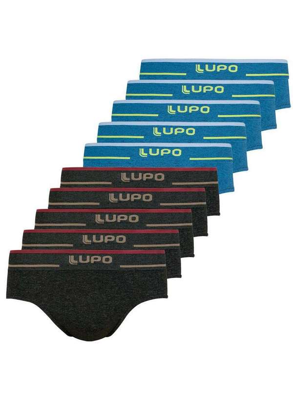 Lupo - Kit com 10 Cuecas Slip Lupo 624-003 Preto-Mescla-Azul