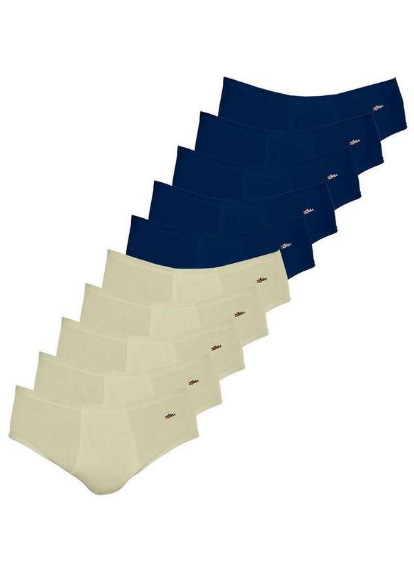 Zorba - Kit com 10 Cuecas Slip Zorba com Abertura 172 Bege-Marinho