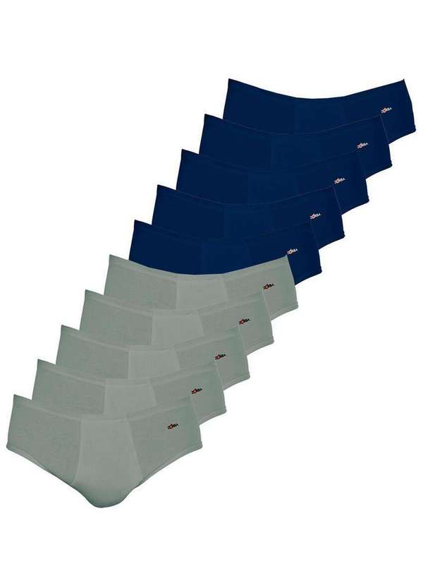 Zorba - Kit com 10 Cuecas Slip Zorba com Abertura 172 Plus Size Grafite-Marinho