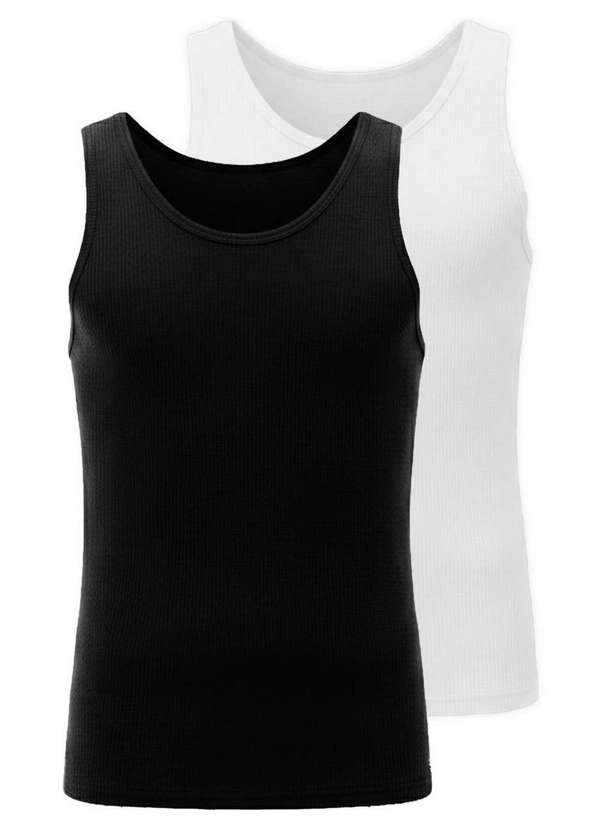 Características: Camiseta regata masculina modelo slim. Ajustada ao corpo e nas cavas, conta com alças largas e gola redonda. Confeccionada em malha ribana de algodão. A malha proporciona um caimento perfeito. Ideal para quem deseja aliar conforto e estilo com looks leves e fresco nos dias mais quentes. Modo de Lavagem: Não lavar a seco. Não remover manchas com solventes. Chapa da base do ferro com temperatura máxima de 150°C. Temperatura máxima de lavagem 40°C. Não pode ser seca em máquina. Não usar alvejamento a base de cloro. Cores: Preto: Todos preto Branco: Todos branco Preto/Branco: 1 preto e 1 branco Composição: Cores N10 Preto e NOA Branco: 100% Algodão. Cor M2H Cinza Mescla: 88% Algodão e 12% Poliéster.