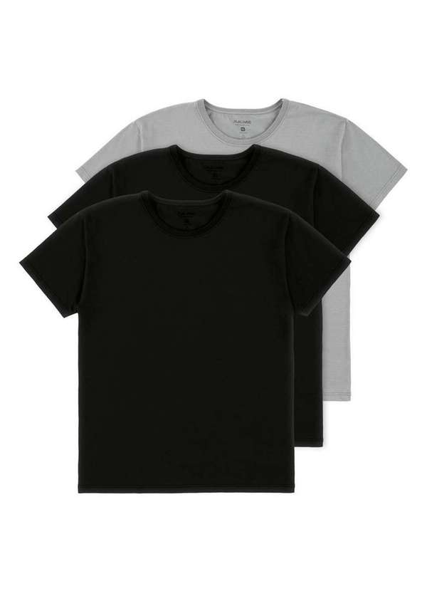 Malwee - Kit com 3 Camisetas Masculina Malwee 1000004423 Preto-Cinza-Mescla