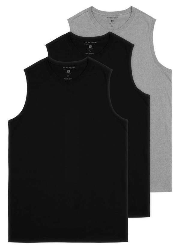 Malwee - Kit com 3 Camisetas Masculina Regata Malwee 1000004421 Preto-Cinza-Mescla